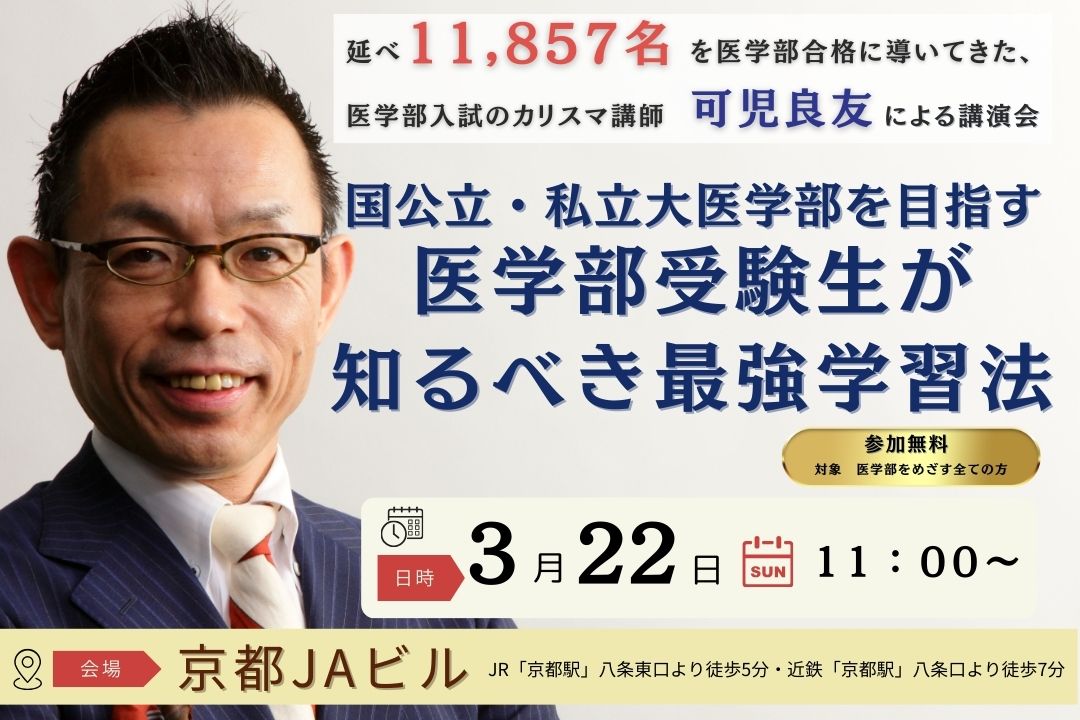 | タイトル | 【京都会場】国公立・私立大医学部を目指す医学部受験生が知るべき最強学習法 |