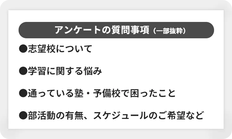 質問項目はいくつかありますが、より良い学習プラン、受験の選択肢をご提案するためのアンケートです。