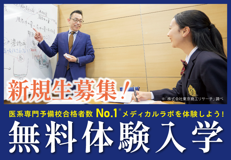 期間限定で、メディカルラボの無料体験入学キャンペーンを実施! 医学部受験やメディカルラボに興味のある方は、このチャンスにぜひご参加ください。